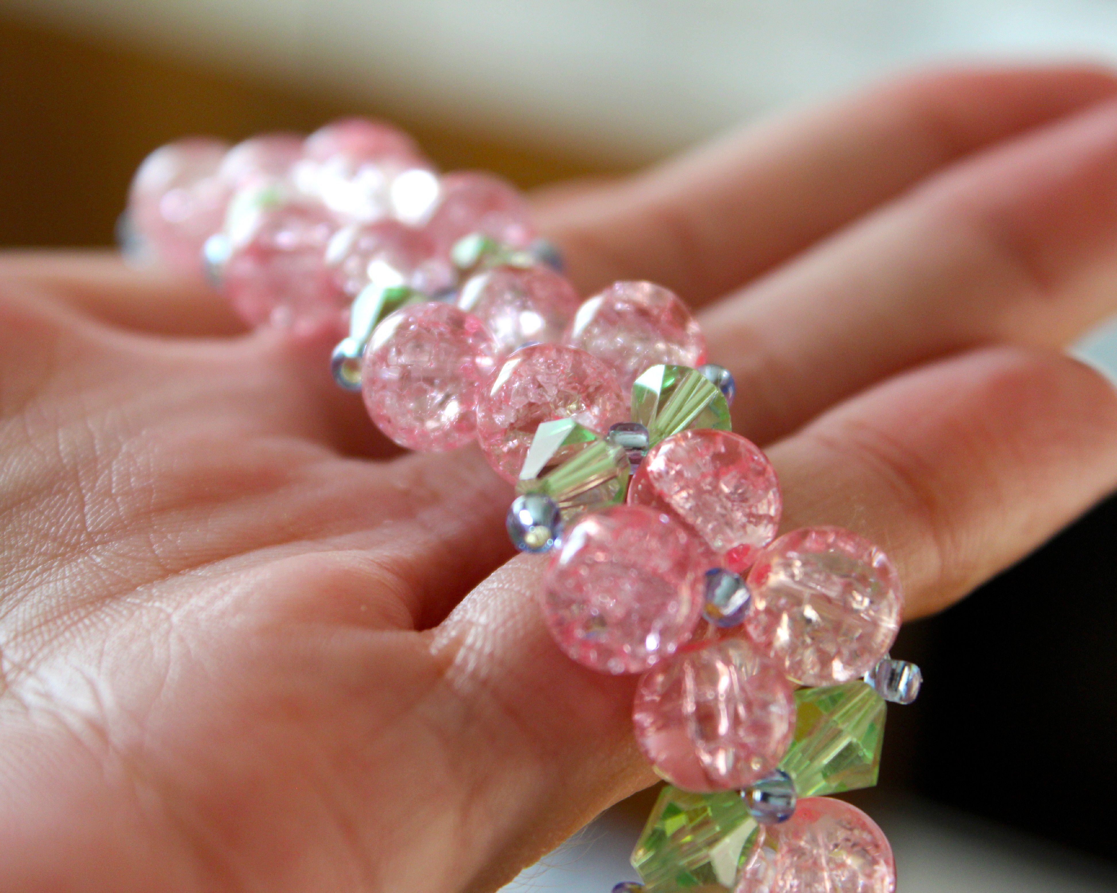 — розовые кристаллы или граненые бусины