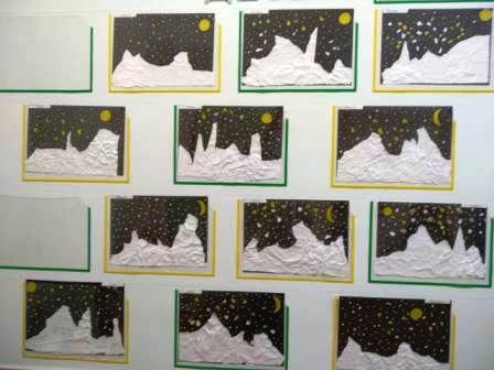 Возьмите синий лист бумаги и приклейте большой лист зеленой бумаги к его нижней части, полностью покрывая его. Приклейте желтый кружок в центре, чтобы изобразить солнце. Вырежьте и прикрепите черные и коричневые силуэты гор вокруг солнца, затем добавьте изогнутый кусок синей бумаги под одной из гор, чтобы изобразить озеро или реку.Повесьте горы кусками серой и белой бумаги, чтобы показать снег и добавить желтые полосы к реке.