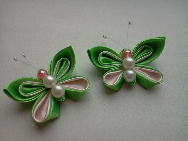 Нежная бабочка «На крыльях счастья» придётся по нраву любой ученице. Ультрамодное веяние делать красивые украшения из атласных лент в стиле