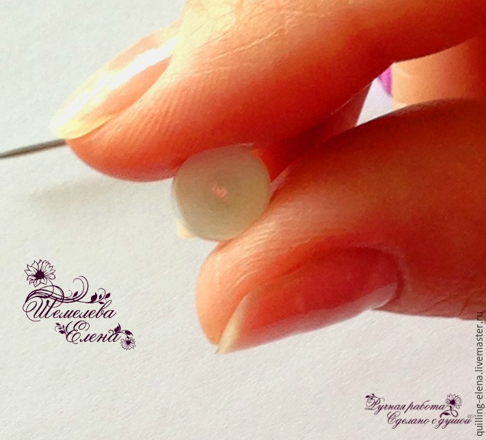 Придать форму капельки из сформированного кружочка можно, прижав пальцами с подклеенного места. При этом придерживайте центр кружка с обеих сторон.