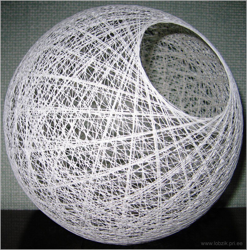 Ниточки можно использовать не только тонкие, но и потолще. Тогда шар получится более рельефным.