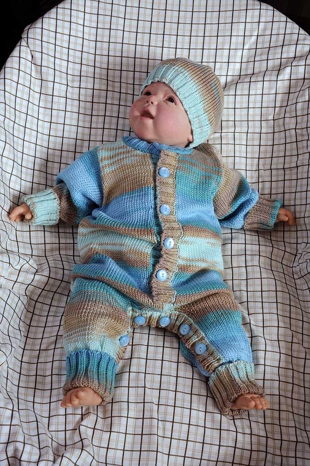Выполняя вязание спицами комбинезонов для новорожденных, предпочтение следует отдать мериносовой шерсти. Ее недостатки: недолговечность, образование катышков. Продлить срок службы шерстяных детских вещей можно при помощи добавления синтетического волокна в процессе вязания.