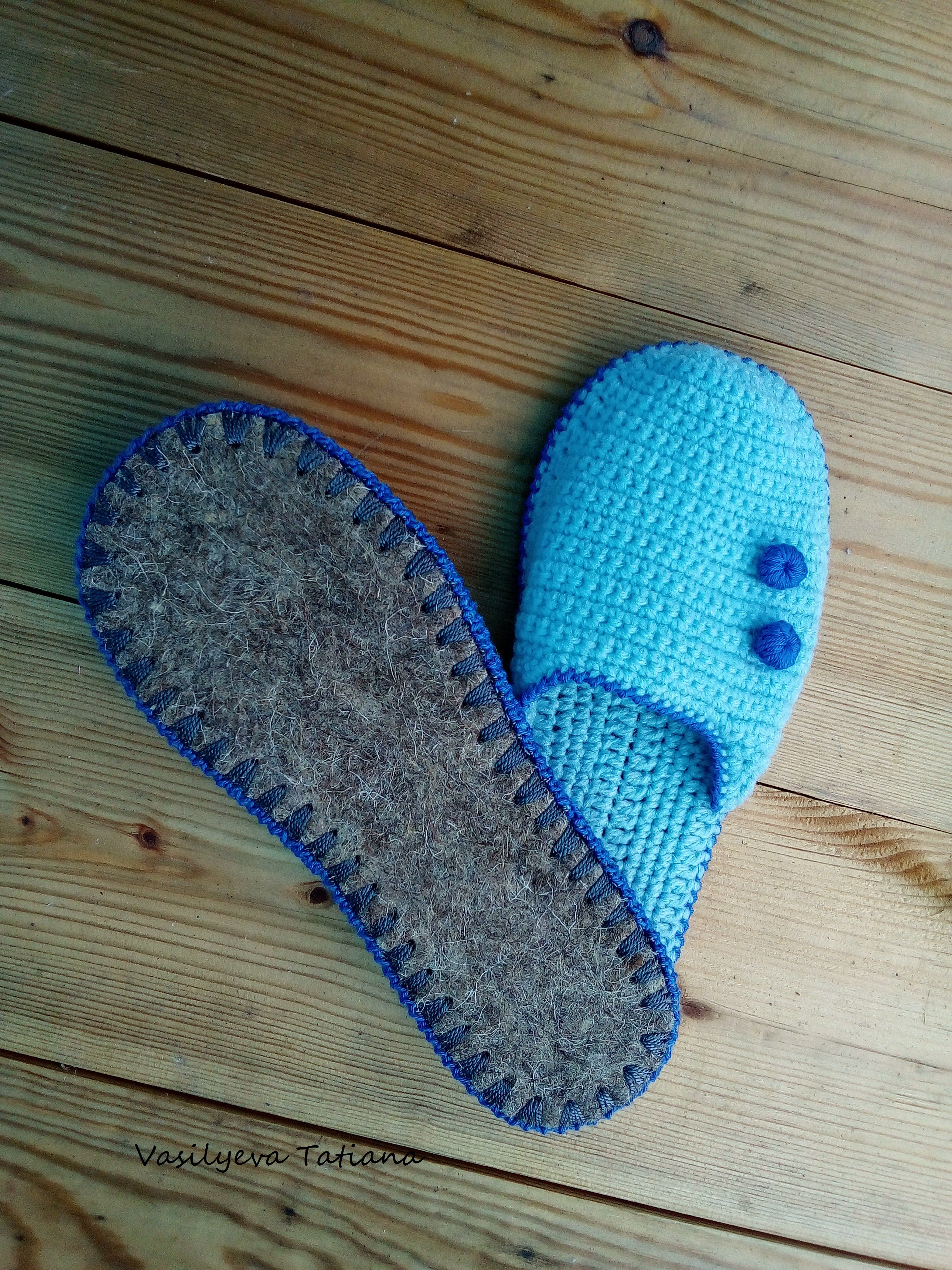 Тапочки крючком. Тапочки-шлепанцы на войлочной подошве.
