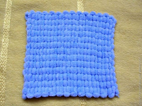 Процесс идет довольно быстро. Не стягивайте нить – она должна ложиться свободно. Закончите полотно нечетным рядом.