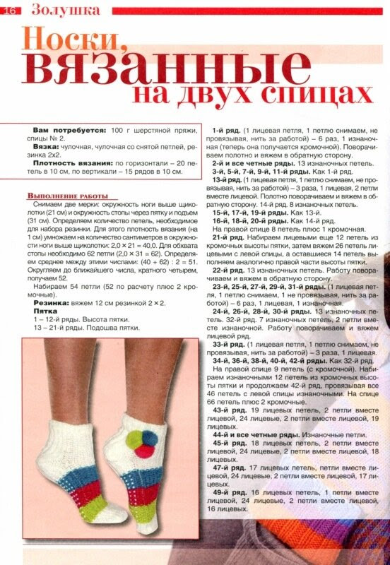 Носки на двух спицах: схема и описание для начинающих