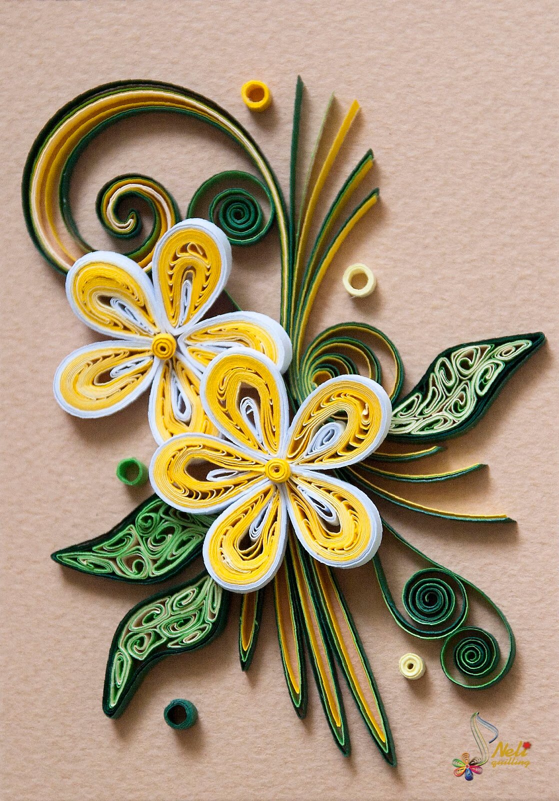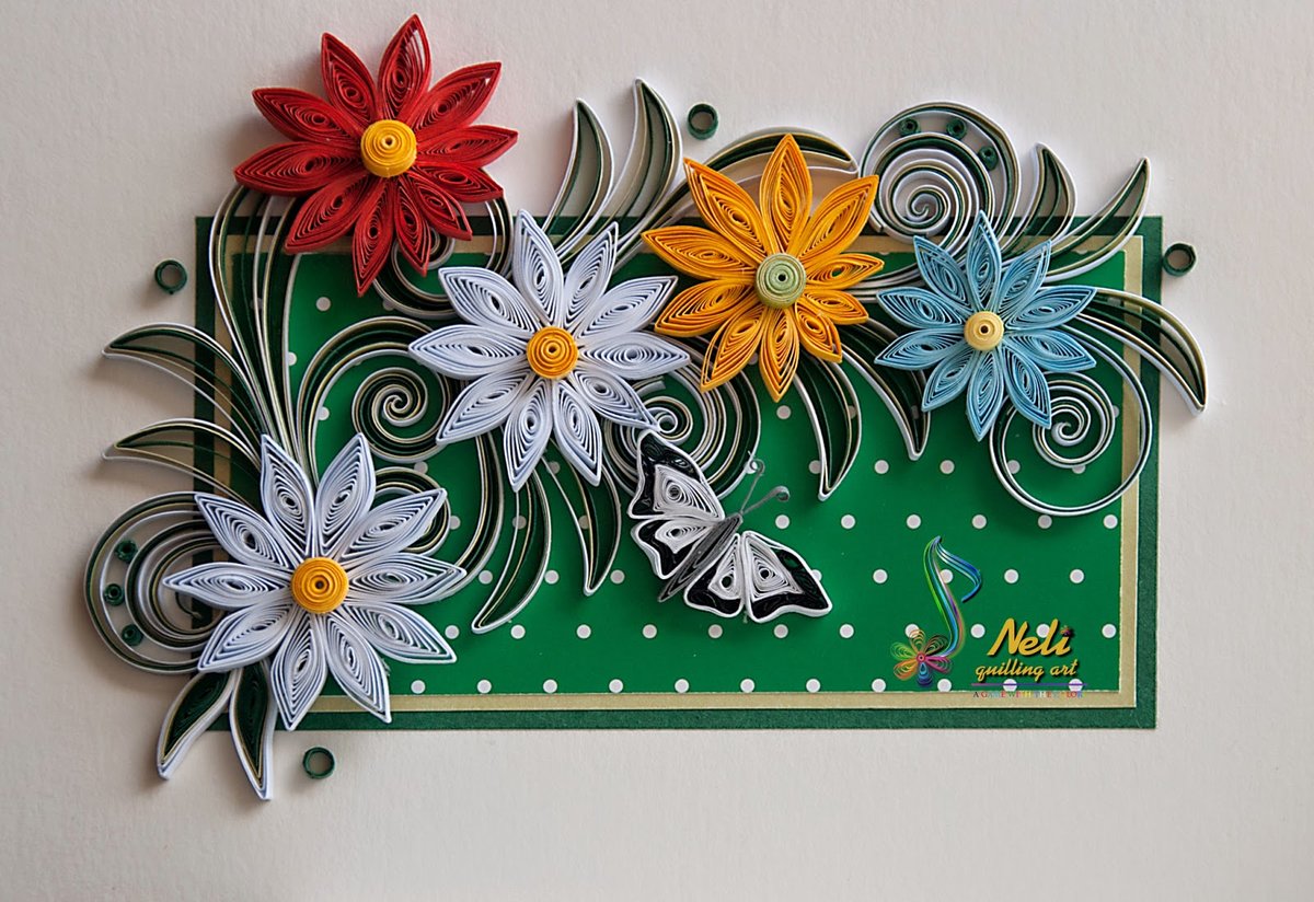 Здесь квиллинг элементы эффектно дополняют рисунок.
