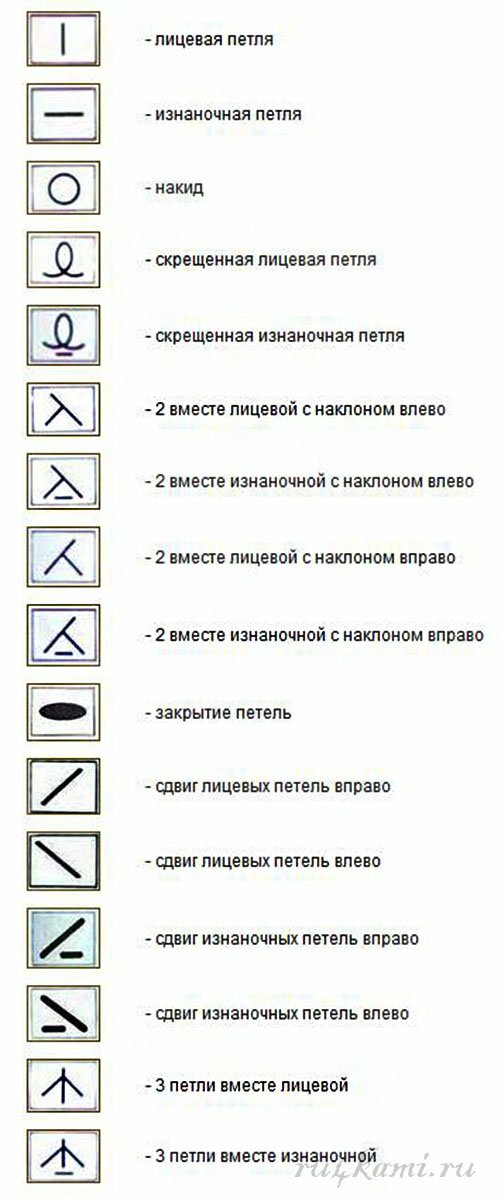 Условные обозначения петель при вязании спицами на схемах с описанием