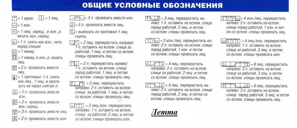 Условные обозначения к иностранным журналам по вязанию спицами
