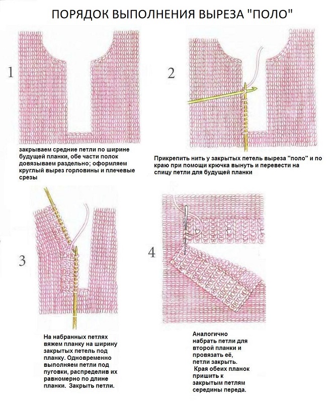 Позаботиться о грамотном выполнении планки нужно уже на стадии вывязывания полочек, создавая линию набора. Особенно это касается работы над жакетом с V-образным вырезом.