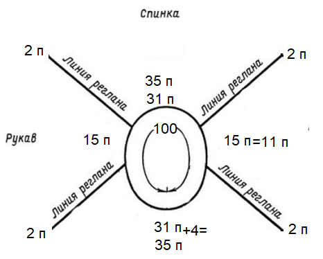 ▶▷▶▷ вязание спицами для женщин кофта реглан сверху схема