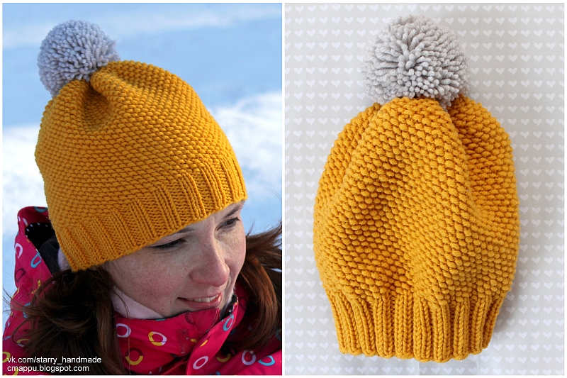 Простая шапка спицами готова!