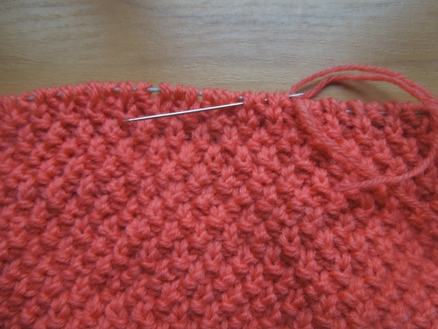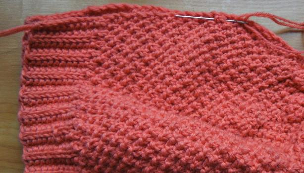 первые 6 п провязываю лиц, следующие 6 п переснимаю на доп спицу