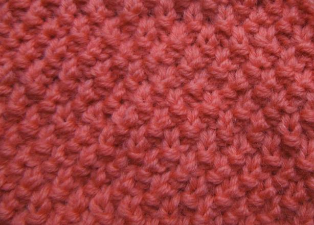 1. Наберите малиновой нитью спицами №4,5 необходимое количество петель (рассчитайте по плотности вязания) и вяжите 8 рядов резинкой 2×2.