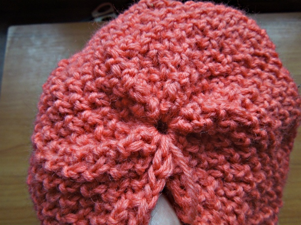 Затем оставшиеся петли стяните рабочей нитью. Выполните шов шапочки с изнаночной стороны.