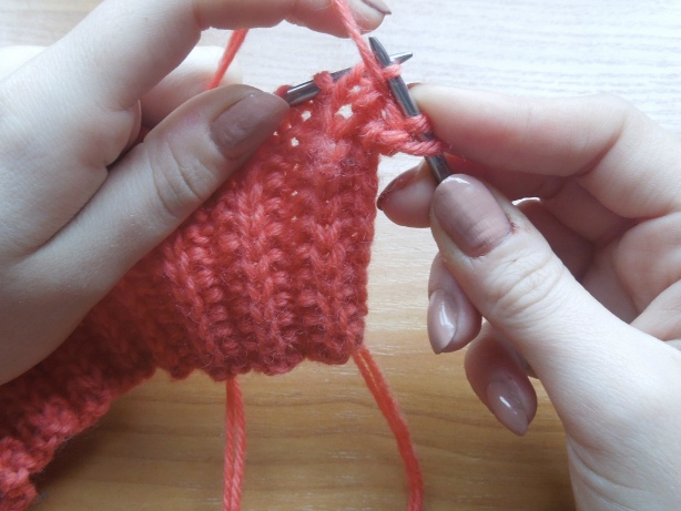 Затем возвращаю петли на спицу и провязываю их, затем следующие 6п просто лицевыми петлями
