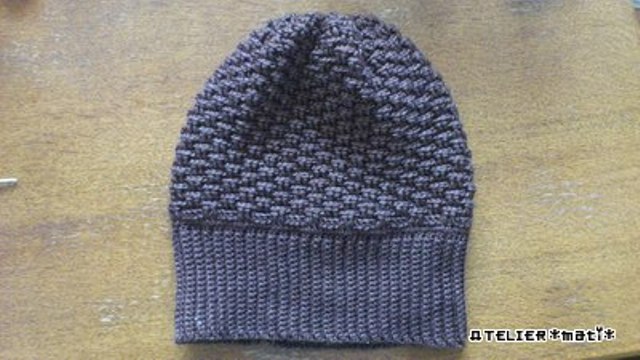 Дальше эти 2 ряда просто повторяем. Получается вот такой узор у шапки.