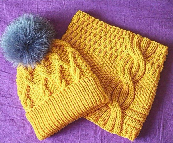 Шапка и снуд узором *Коса с тенью*