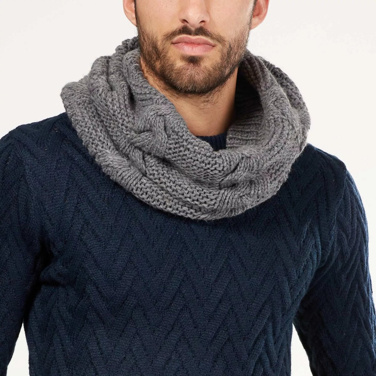 С вязаным шарфом легко создать кэжуал стиль или подчеркнуть элегантность классического костюма, пальто, шубы. На смену трикотажным и шерстяным шарфам приходят вязаные аксессуары, актуальные этой зимой. Не бойтесь приобрести объемный и длинный вязаный шарф. Он придаст повседневному образу эксклюзивность. Снуд. Этот шарф составляет основу гардероба мужчины и женщины. Изначально, снуд был женским аксессуаром, но позднее он обрел универсальные черты. Круговой шарф удобный, стильный и теплый. Он надежно защищает от холода, а его практичность и комфорт обеспечивают изделию популярность. Снуд легко превратить в головной убор, он подходит как для повседневных, так и деловых вещей. Шарф-хомут и «труба» — то же самое, что и снуд. Эти универсальные и функциональные аксессуары красиво обрамляют шею и создают многослойность.