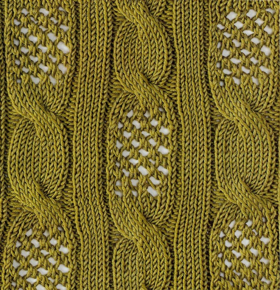 Связанный расходящимися и сходящимися косами узор для пряжи средней и более толщины.