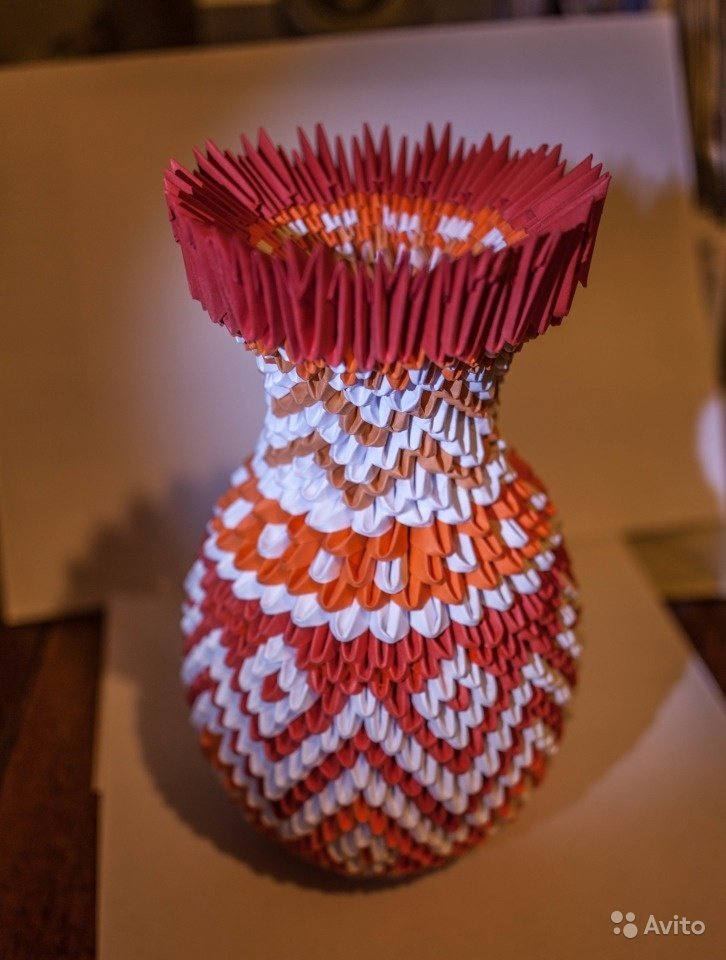 Чтобы изготовить вот такую вот вазу, нужно много терпения и 1920 модулей. Чего стоит только собрать модули все вместе, не говоря уже о том, чтобы нарезать заготовки и согнуть нужное количество.