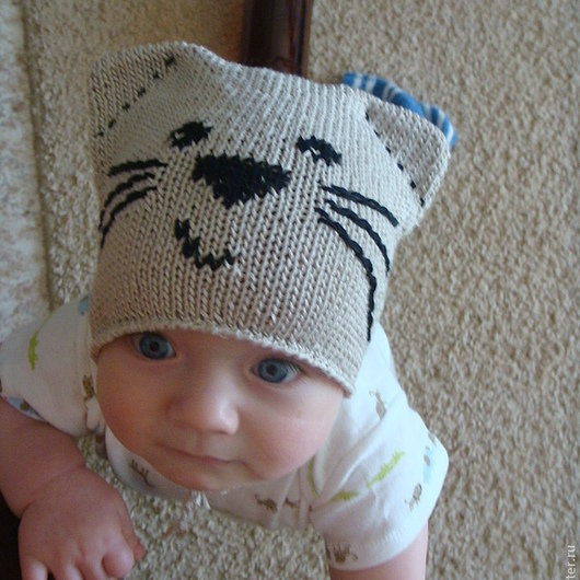 Это изделие предназначено для детей от полугода до 12 месяцев с окружностью головы 43-48 см. Из материалов приготовьте 1 моток акриловой пряжи, спицы на 3,75 и 4 мм, два держателя для петель, иглу.