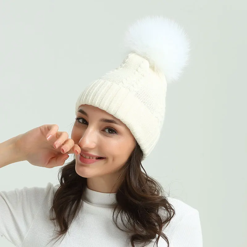 - Двухцветный помпон сверху с толстой нижней манжетой