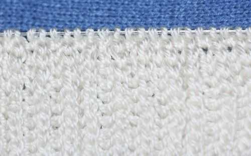 При смене клубка нужно следить за цветом крайней петли: она показывает, какого цвета пряжу нужно использовать. Как правило, для лицевой стороны выбирается светлый оттенок, а для изнанки – темный.
