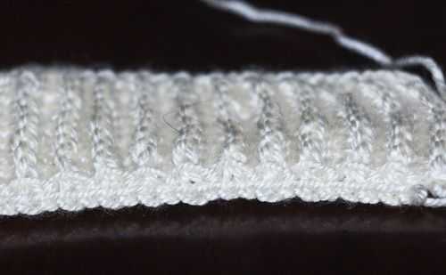- Петли провязываются поочередно по одной за изнанку и за лицо.