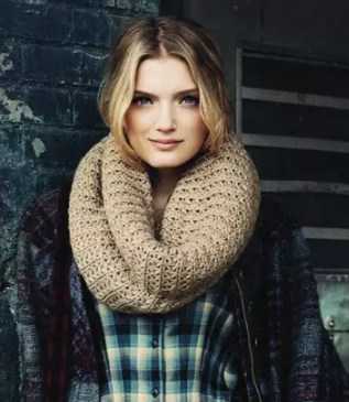 Шарфы такого типа очень популярны. Это изделие легко связать спицами.