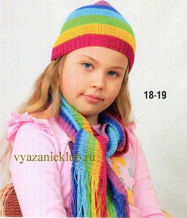 А если в дополнении к шарфу связать шапочку и варежки, то ваш ребенок станет обладателем такого же замечательного комплекта.
