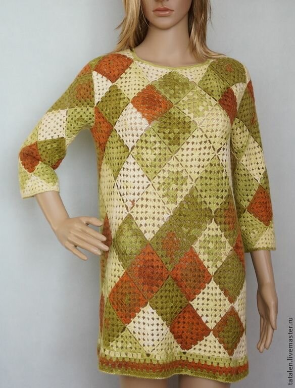 Самый простой метод изготовления вещей. Выполняют несколько мотивов. Обычно делают квадраты из остатков пряжи. Элементы сшивают или связывают, образуя единое полотно.