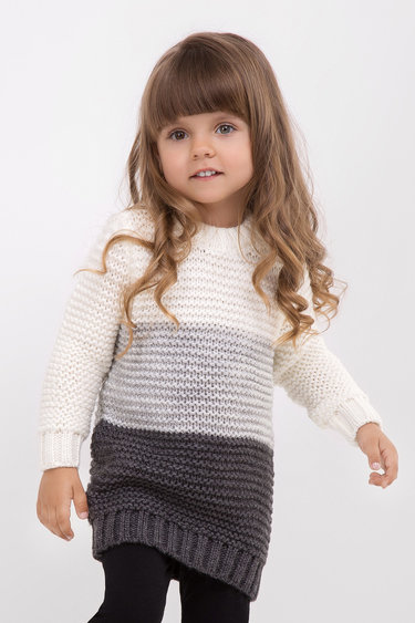 Милый детский пуловер, связанный спицами, украсит вашу малышку (или не совсем малышку).