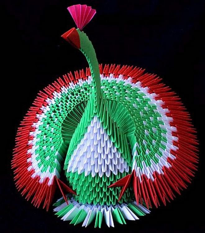 Чтобы сделать, например, лебедя, змею или новогоднюю елку, используя эту технику, вам нужно приготовить множества бумажных треугольных модулей , а затем объединить их, чтобы получить желаемую форму.
