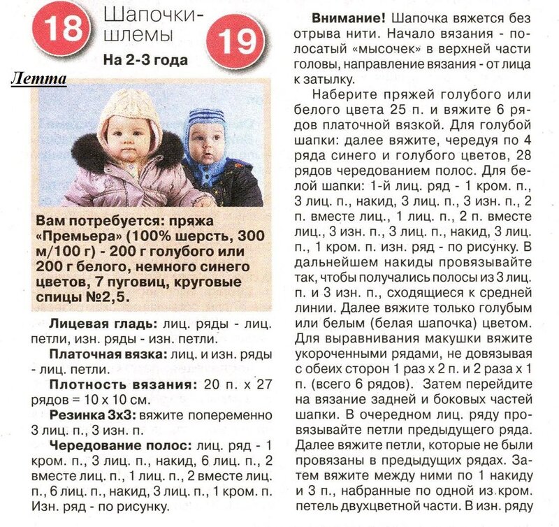 Шапка-каска — изделие, сочетающее в себе достоинства шапки-ушанки и шарфа (или пелерина). То есть это теплая вещь, надежно защищает ребенка от холода и ветра, дующего в уши, шею и шею.Наверное, поэтому мамы все чаще выбирают эту шапку: не стоит переживать, что ребенок потерял шарф на прогулке, неправильно его завязал или не умеет это делать. В шапке-шапке, связанной спицами из теплой пряжи, ее в любом случае заворачивают и утепляют. Особенно если дополнительно надеть подкладку из мягкого флиса. Шляпа-шлем — универсальный предмет гардероба: он подходит как мальчикам, так и девочкам.