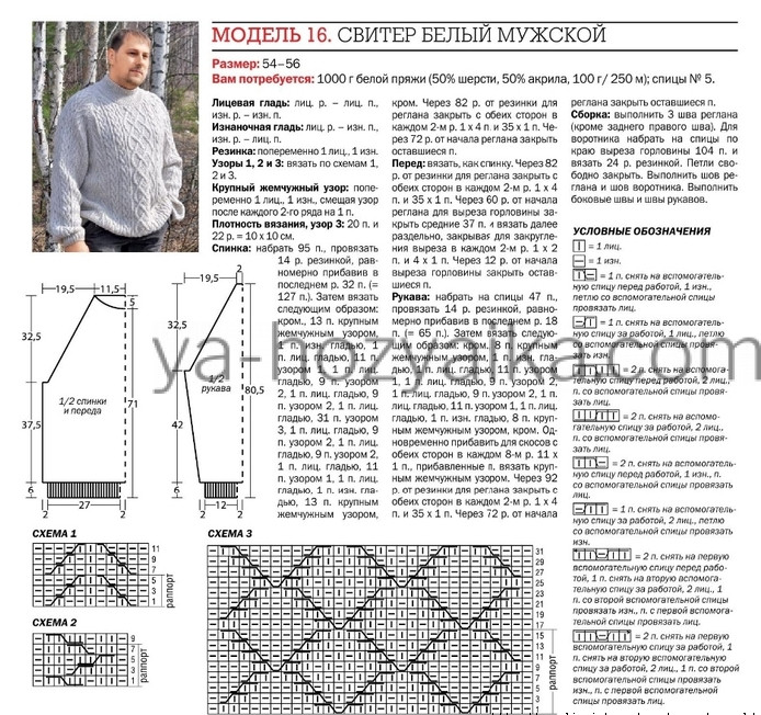 ВЫКРОЙКА МУЖСКОГО СВИТЕРА ДЛЯ ВЯЗАНИЯ 54-56 РАЗМЕР
