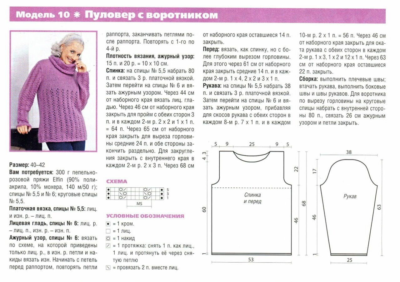 В последней полосе необходимо добрать закрытые петельки и объединить две части воротника. Первые десять п. вяжите платоч. вязкой, а оставшиеся согласно схемы. Нужно связать 6 раппортов ажурного узора в высоту, а потом двадцать р. резинки 1 на 1 и 20 р. платоч. вязки. В конце сделайте убавки по 1 петельке вначале и в конце полосы до того момента, пока у вас не будет всего три п. Их стягивают рабочей ниткой.