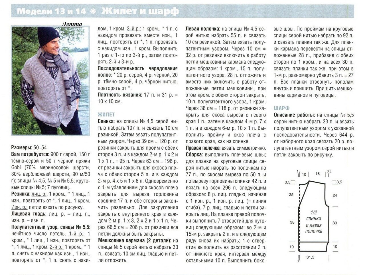 Мужской жилет (размер 52—54), схема вязания спицами 👍