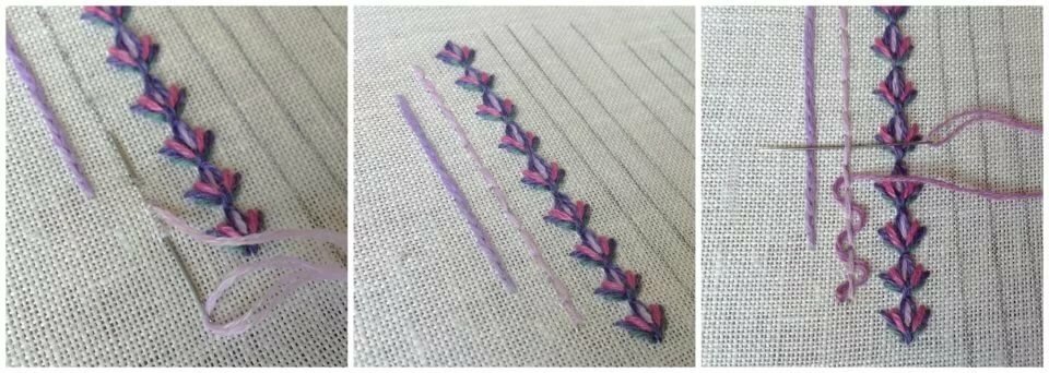 Стебель стежка из ниток хлопка с использованием от одной до шести нитей мулине; фото через Needle ‘n Thread